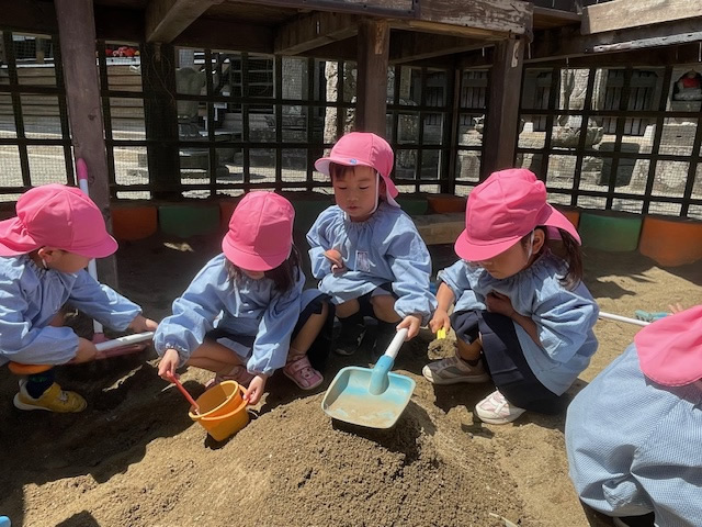 お寺の幼稚園として、明るく、正しく、仲よくをかかげ、子ども一人ひとりに寄り添い、家庭的であたたかい雰囲気の中で保育を行っています。安心して園生活を送れる環境づくりを大切にしています。