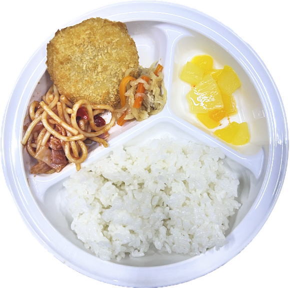 ご飯・エビカツ・切干大根煮・スパゲティー・デザート