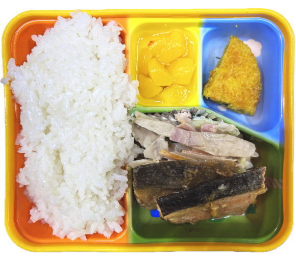 ご飯・魚みそ焼き・ごぼうサラダ・野菜コロッケ・フルーツ