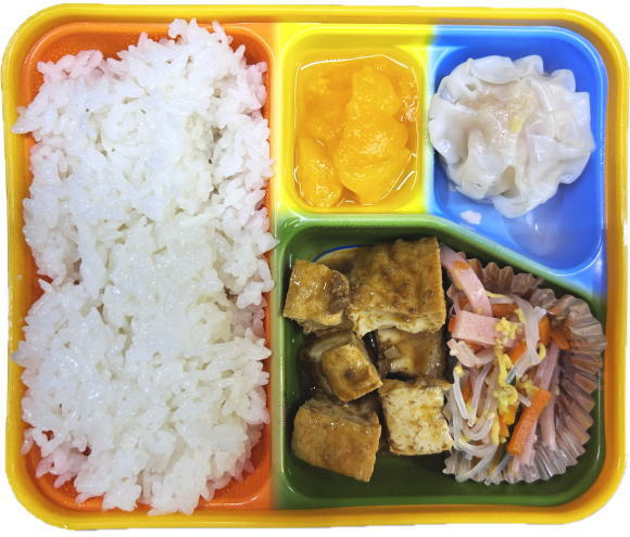 ご飯・麻婆豆腐・海鮮シュウマイ・華風和え・フルーツ
