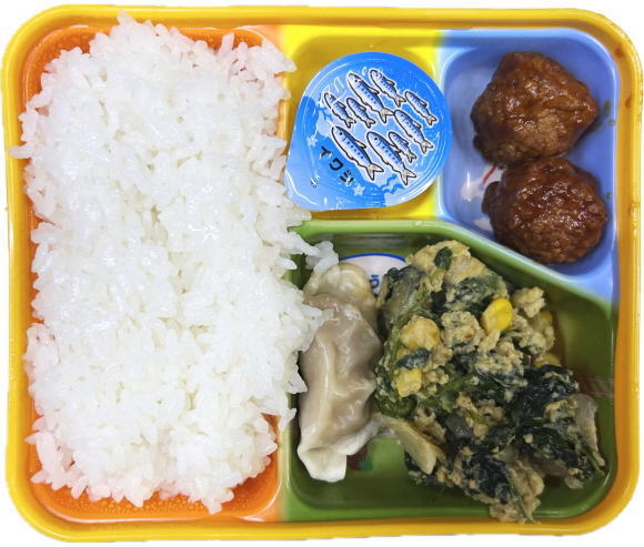 ご飯・ぎょうざ・肉団子(甘辛)・やさいの卵とじ・フルーツゼリー