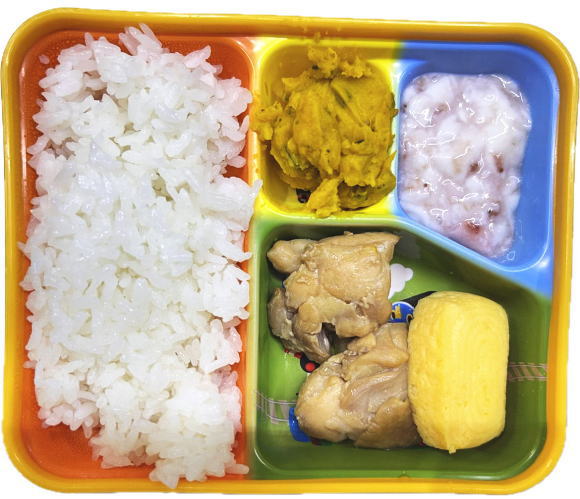 ご飯・チキンレモンステーキ・卵焼き・かぼちゃサラダ・パンナコッタ