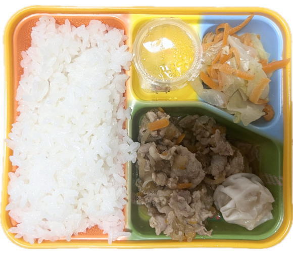 ご飯・豚の生姜焼き・しゅうまい・キャベツと人参のサラダ・ゼリー