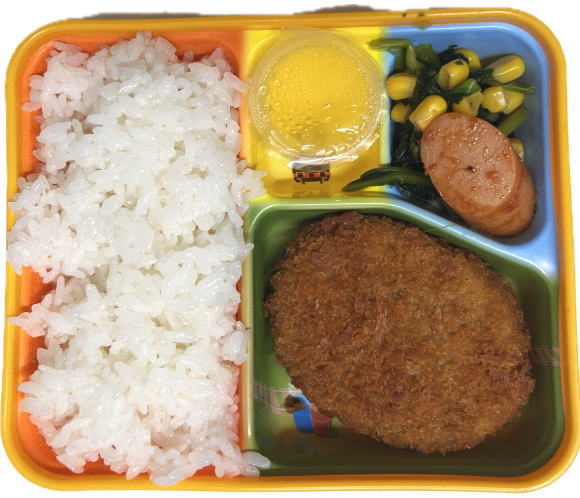 ご飯・かぼちゃコロッケ・魚肉ソーセージのケチャップ炒め・おひたし・ゼリー