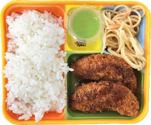 ご飯・メンチカツ・スパゲティサラダ・ゼリー