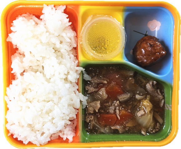 ご飯・八宝菜・肉団子の甘酢和え・ゼリー