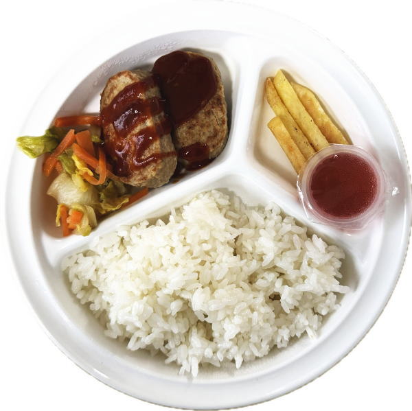 ご飯・ハンバーグ・フライドポテト・温野菜・ゼリー